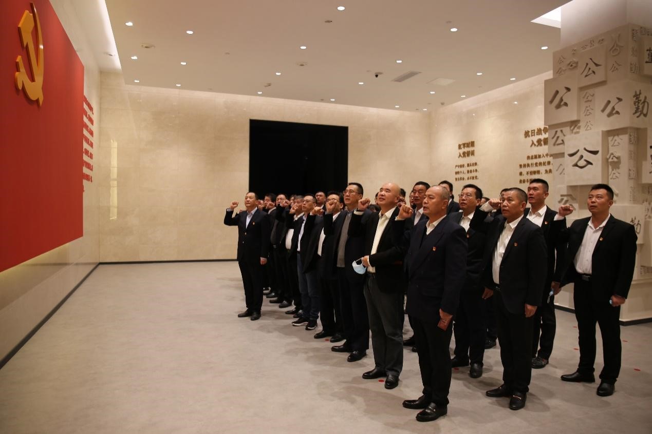 在高绍和的领誓下,参加活动的全体党员干部面向党旗,重温入党誓词,回顾初心铮铮有声,许下坚守使命的承诺。