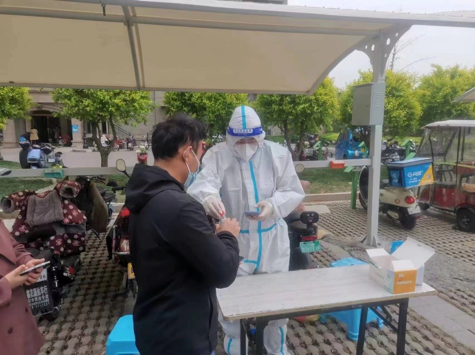 刚结束固定社区服务的于海龙、张波,又主动要求参与此次抗疫行动。同是退伍军人又是党员的他们,在核酸检测点搬运桌椅、清点防控物资、登记核酸检测信息、发放核酸检测贴纸,化身检测点 “秩序员”“宣传员”,彰显退伍不褪色的军人本色。