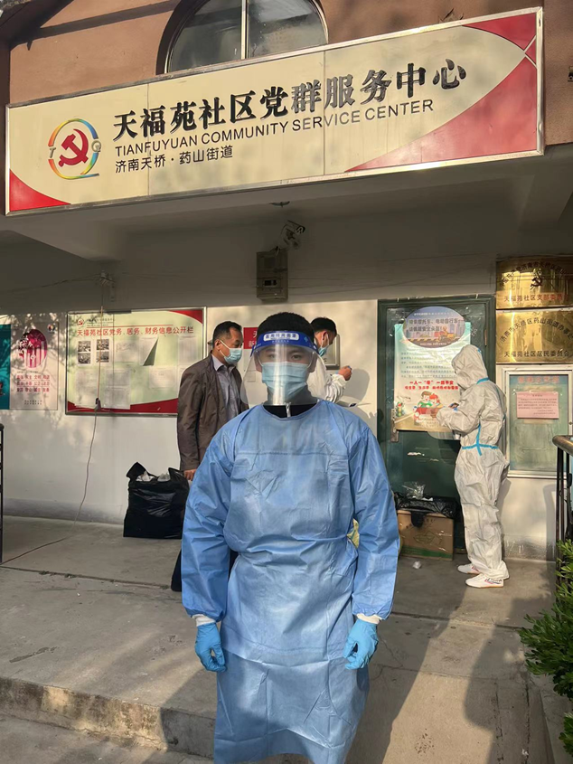 4月27日一早,来自济南科技创业投资平台有限公司黄金和张泽阳就赶赴胥家村,站好健康查验点的第一班岗;济南经发基金管理有限公司的崔家浩与天桥区天福苑检测点人员正做着做好核酸检测维持秩序工作;恒盛注册资产管理有限公司的任政分配到槐荫区兴福街道济西社区,与其他参与防疫的人员一起接受岗前培训后,迅速上岗;济南经发中小企业服务有限公司的谢炳怡与小鸭平台的刘玉峰、金德利平台的刘相涛一起前往高新区临港街道,接受工作任务。随后,赵梓淇、董振兴、高志翔、张乐等几名同事也投身于防疫的志愿者队伍中。