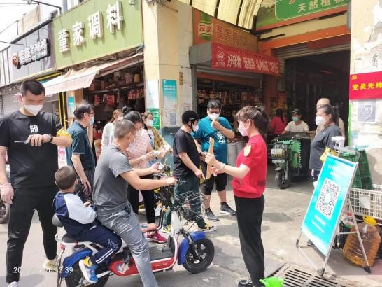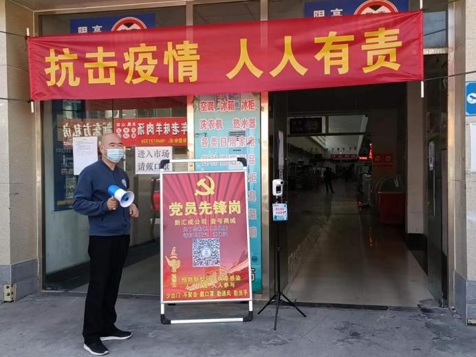 为确保凤凰山路壹号商城疫情防控工作落细落实,新汇成公司采取以党员带群众的形式,动员全体职工参与疫情防控。五一节假日期间,全体职工坚守岗位,严格执行“双检一测一登记”流程,对进场的所有人员进行“双码”查验、测量体温并进行追本溯源信息登记,每日对进出场的200余辆车辆进行消毒。
