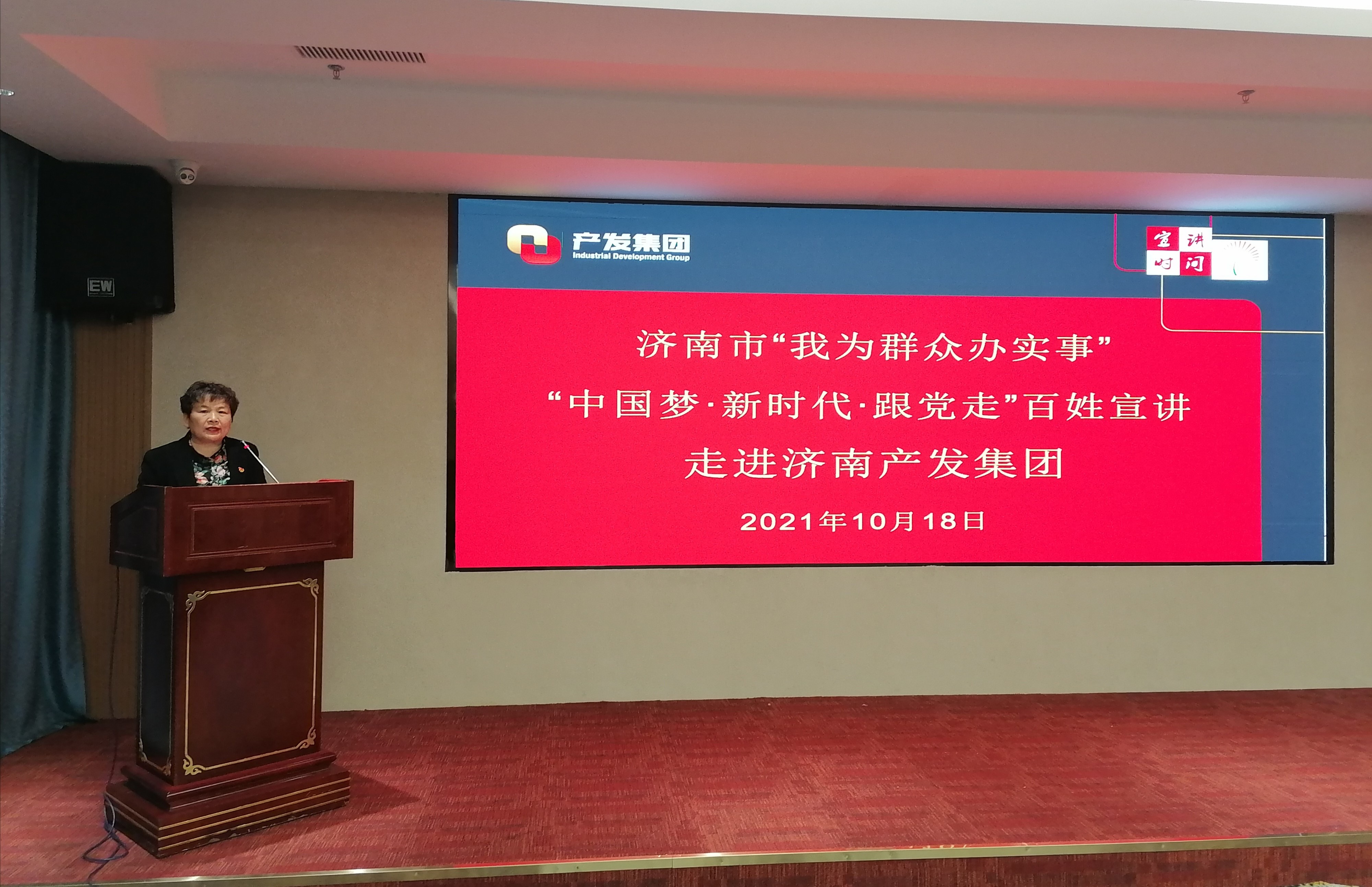 为深入贯彻落实习近平总书记“七一”重要讲话精神,扎实推进党史学习教育“我为群众办实事”活动,10月18日下午,济南市“我为群众办实事”“中国梦·新时代·跟党走”百姓宣讲活动走进恒盛娱乐。在市委讲师团副处级干部吕桂红的率领下,“我为群众办实事”百姓宣讲团的6位宣讲员用他们的亲历、亲闻、亲为,为恒盛注册50余名参会干部职工讲述“听党话、跟党走、率先垂范、主动担当、无私奉献”的动人故事。